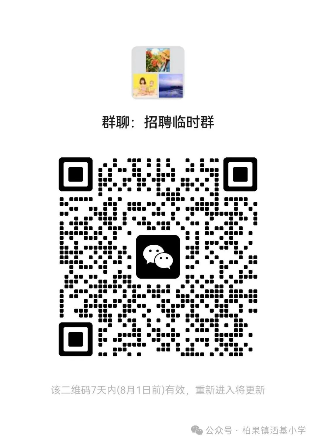 报名要求:应聘者请将个人简历及相关证书扫描成电子版打包发送至学校招聘微信群(见下图)并将打包好的个人资料以姓名+电话号码+应聘学科的方式命名。