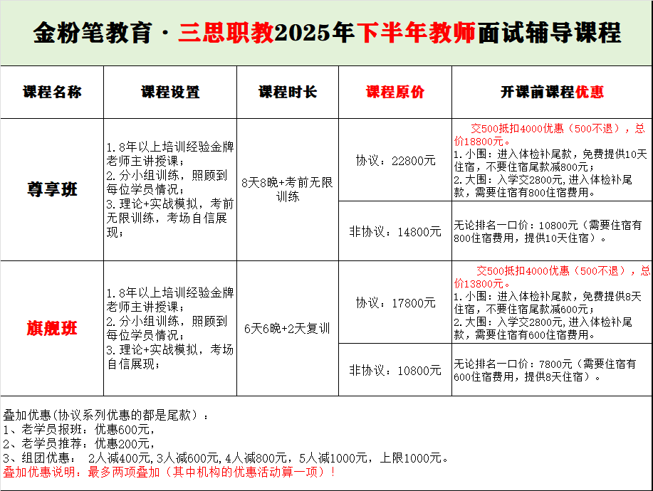 贵州金粉笔2025年下半年贵州教师面试培训班来了,开课时间8月4日至考前,针对教师面试形式培训,资深师资全程主讲。2025年教师面试班预约及咨询:13368515037(微同)。