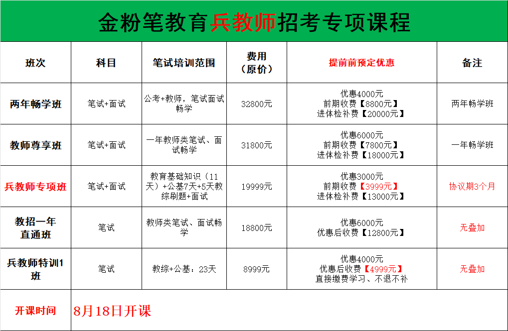 贵州金粉笔2025年贵阳市中小学“兵教师”笔试培训课程来了,开课时间8月18日,开课前预约课程可享优惠,贵阳兵教师笔试班预约及咨询:13368515037(微同)。