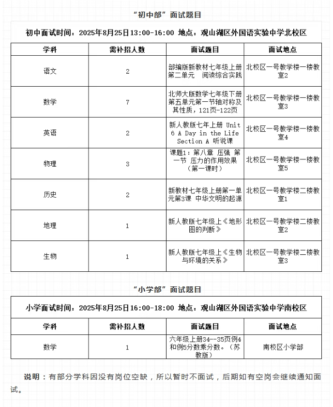▫ 观山湖区第七中学2025年秋招聘临聘教师简章(若干名|8.24-8.31报名)