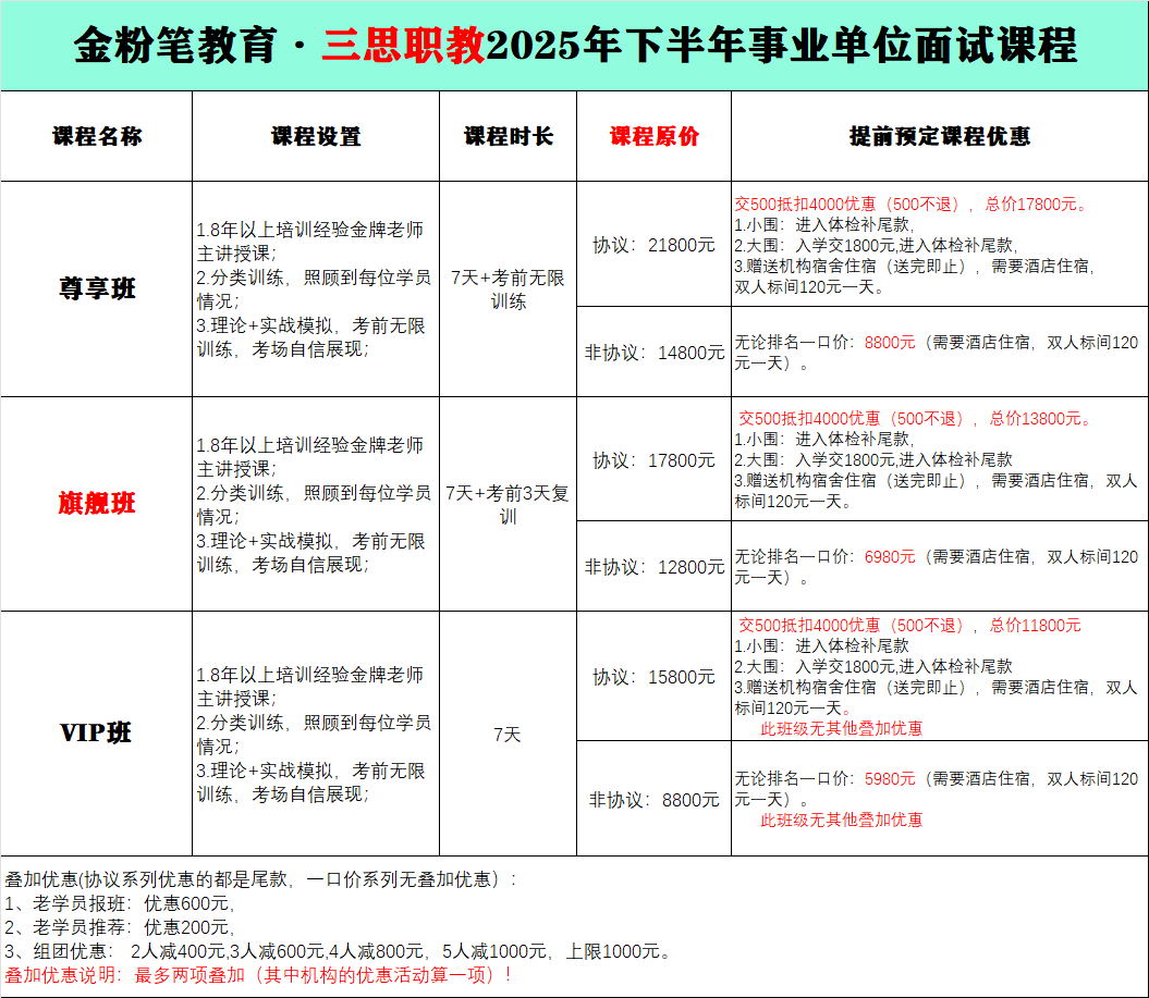 贵州金粉笔.三思职教2025年下半年事业单位面试培训班课程来了,8年以上面试主讲老师授课。下半年事业单位面试班预约及咨询:13368515037(微同)。