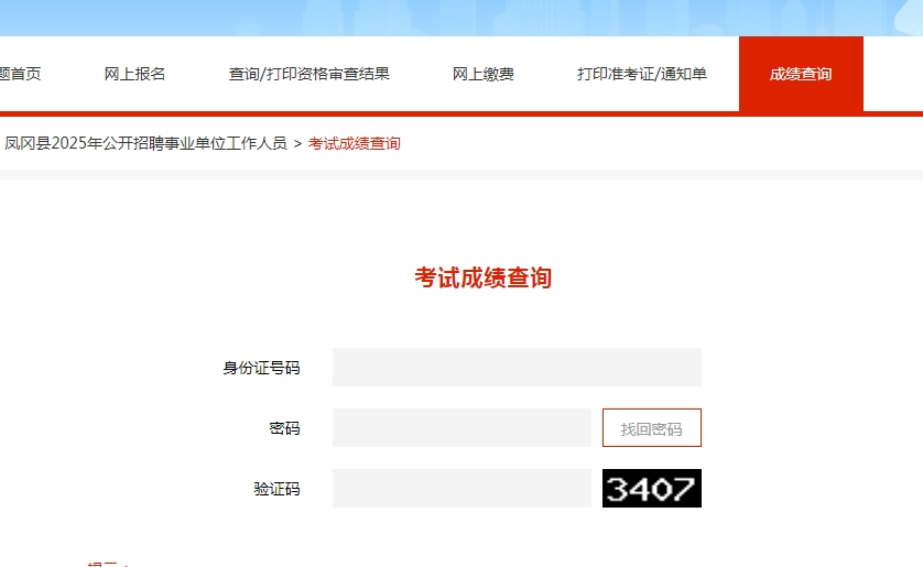 2025年凤冈县事业单位招聘笔试成绩查询入口已开通,请考生在2025年9月4日上午9︰00至2025年9月7日下午17︰00期间登录报名系统,点击“成绩查询”,按照要求输入个人身份证号码、注册密码和验证码后点击“登录”,即可查询笔试成绩。
