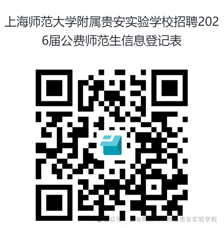 2.提交材料:凡符合应聘条件者,请扫描下方二维码填写《上海师范大学附属贵安新区实验学校招聘2026届公费师范生信息登记表》,确保所填信息真实有效。若因信息不实而影响录用的,后果自负。