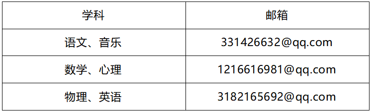 凡符合应聘条件者,请将简历材料及相关证书扫描件发送到指定邮箱(邮箱见下表)。注:以“学科+姓名”为文件名将个人简历及相关证书扫描成一个PDF发送到指定邮箱。