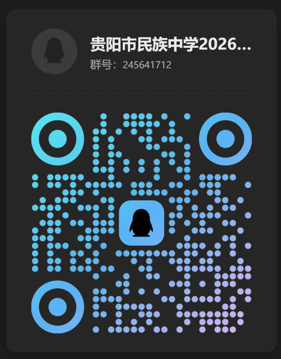 ②填写完毕后,扫描下方QQ二维码进入“贵阳市民族中学2026届公费师范生招聘群”,申请进群后请将群昵称修改为“学科+姓名+学校”(如:语文 张三 西南大学);