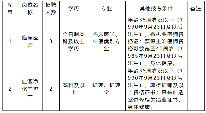 因医院发展需要,根据“退一补一”原则。为解决医院人力资源不足问题,经研究决定,现面向社会进行公开招聘编外工作人员5名,为做好本次招聘工作,现公告如下: