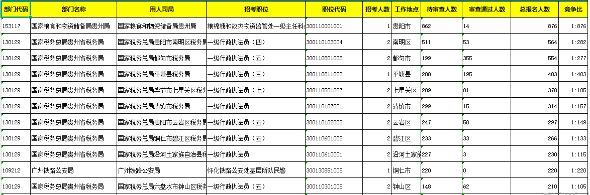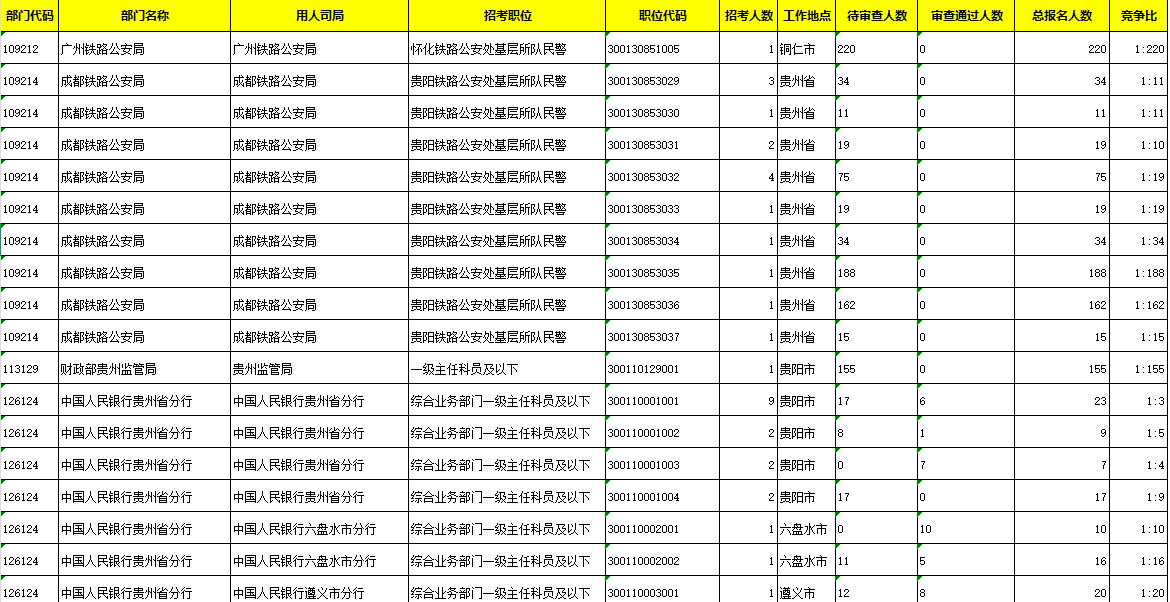 2026国考贵州地区报名人数(截至10月16日16时)部分展示