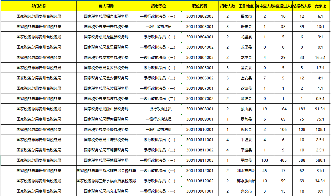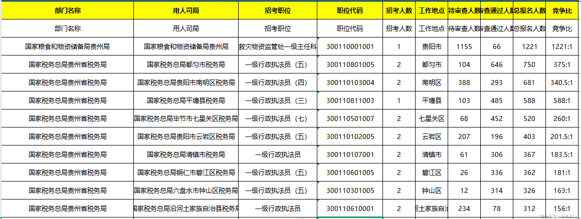 2026国考贵州地区报名人数(截至10月17日16时)部分展示