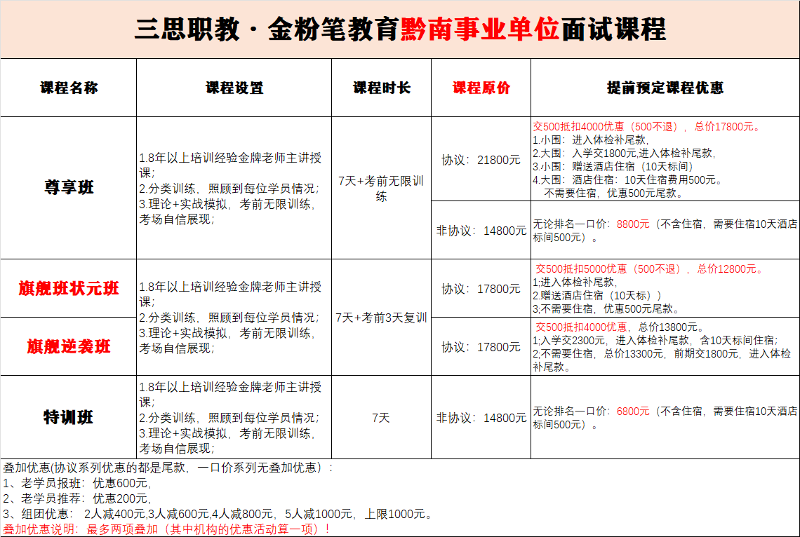 贵州三思职教2025年黔南州事业单位面试班来了,综合岗、医疗岗第一期10月25日开课,教师岗第一期10月23日开课,开课前预约可享最大面试课程活动优惠,综合岗、医疗岗面试培训,黔南州事业单位面试班预约及咨询:13368515037(微同)。