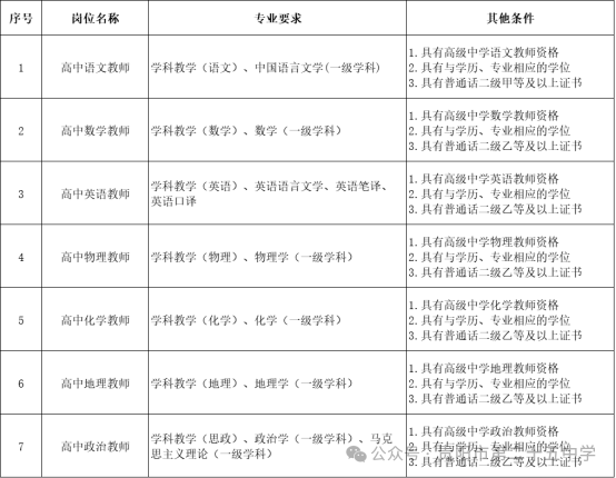 1.招聘岗位:高中语文、数学、英语、物理、化学、地理、政治学科临聘教师。