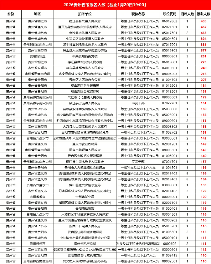 截至2026年1月20日19:00,贵州省考全省报名过审人数53853人!