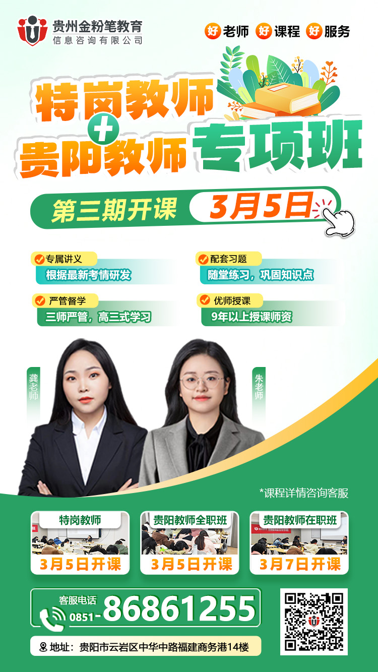 贵州金粉笔2026年贵州特岗教师笔试班第二期3月5日开课,支持试听,在开课前预约可享相关课程优惠,贵州特岗教师笔试班预约及咨询:13368515037(微同)。