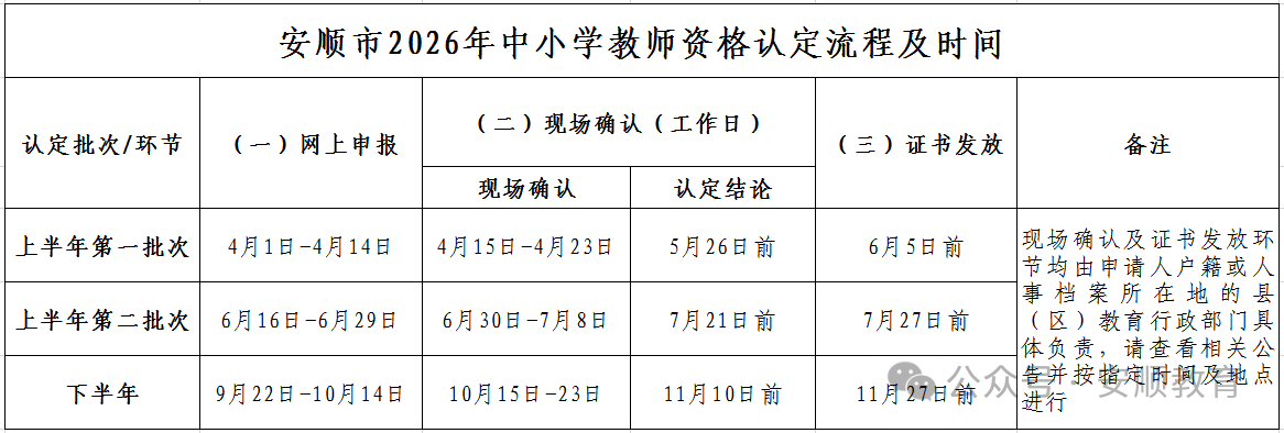 为做好我市2026年中小学教师资格认定工作,根据《中华人民共和国教师法》《教师资格条例》《贵州省教师条例》《贵州省面向社会推行教师资格制度实施细则(试行)》和《贵州省教育厅关于做好2026年中小学教师资格认定工作的通知》等要求,结合我市实际,现将2026年中小学(含中等职业学校和幼儿园)教师资格(以下简称中小学教师资格)认定工作的有关事项公告如下: