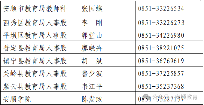安顺市市级及各县(区)教师资格认定咨询电话: