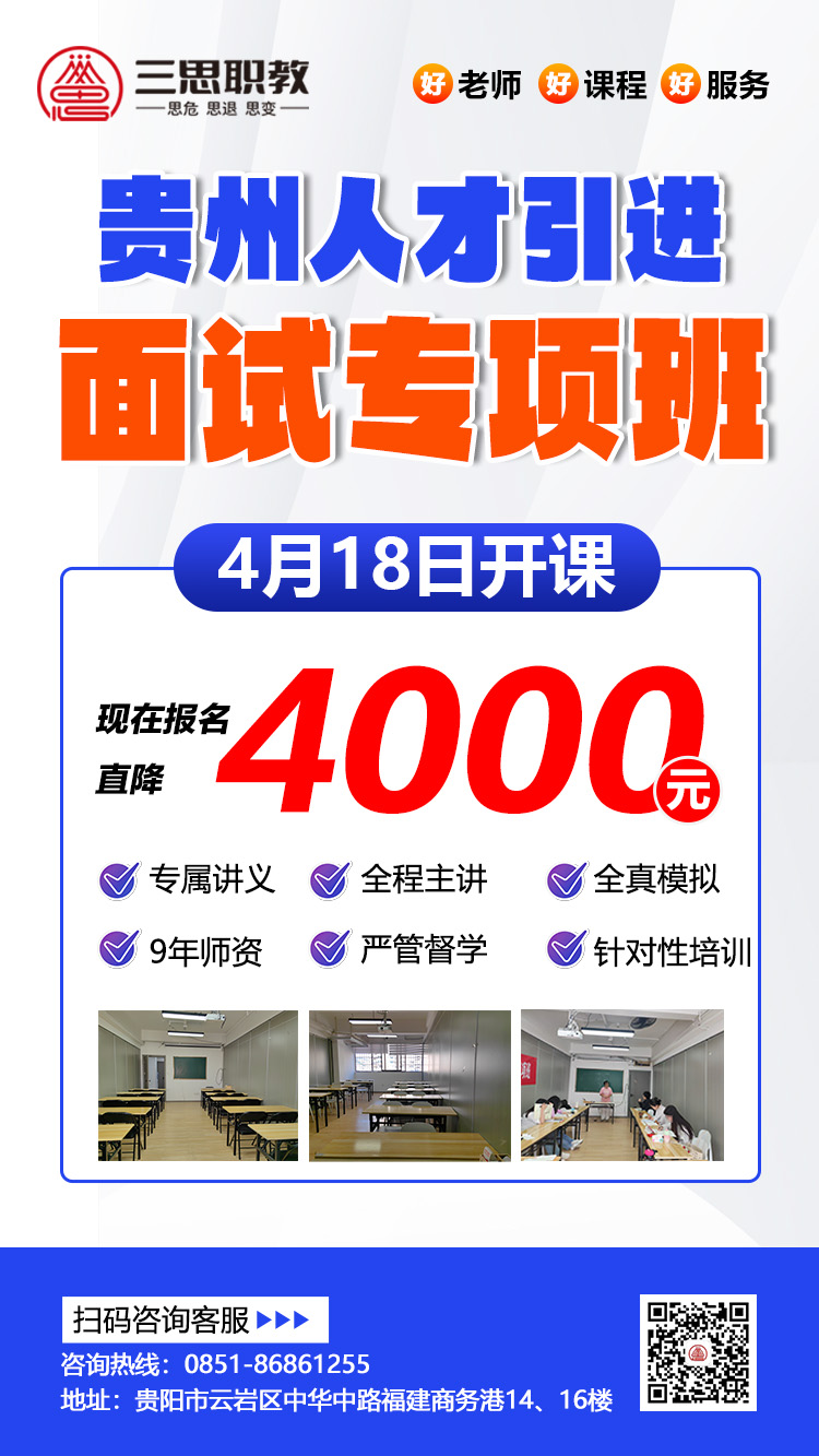 贵州金粉笔.三思职教2026年人才引进面试培训班来了,分类培训,紧跟考情,全程主讲老师,小班教学,贵州人才引进面试班预约及咨询:13368515037(微同)。