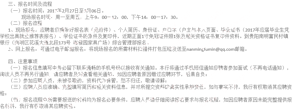 法务人员 | 2 | 1、 贵阳市户籍; 2、 40周岁以下; 3、 法学及相关专业,大专(含)以上学历; 4、 有法院经济庭、执行庭等工作经验者优先; 5、 工资面议。 |