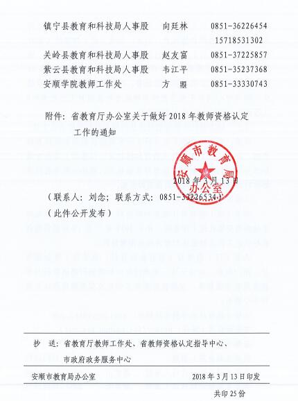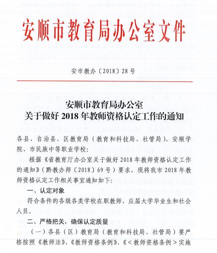 安顺市教育局办公室关于做好2018年教师资格认定工作的通知