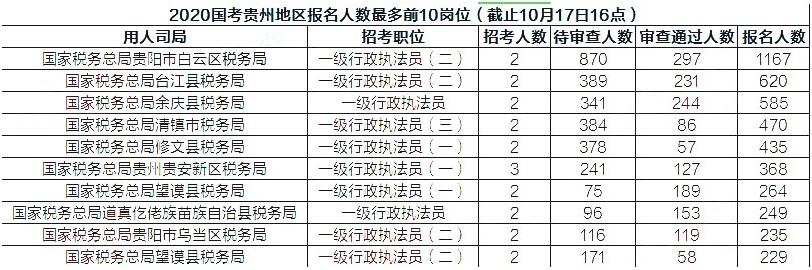 2020国考贵州地区报名人数最多前10岗位(截止10月17日16点)