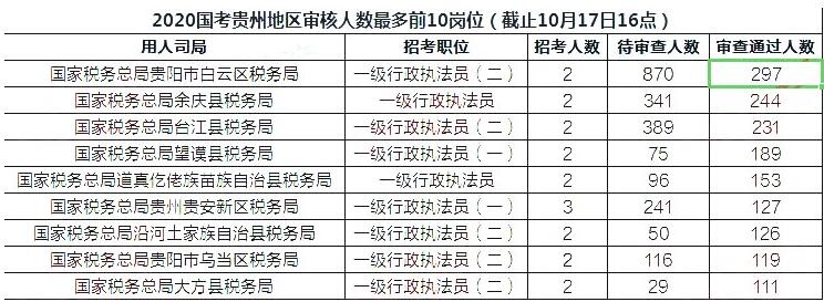 2020国考贵州地区审核人数最多前10岗位(截止10月17日16点)