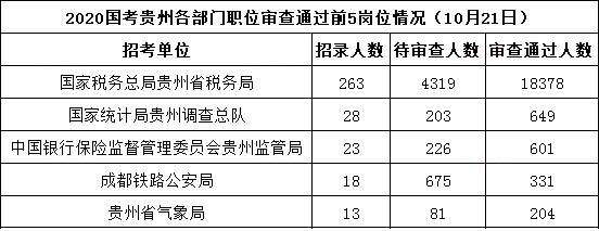 2020国考贵州地区各部门报名审核情况前5部门(10月21日9时)