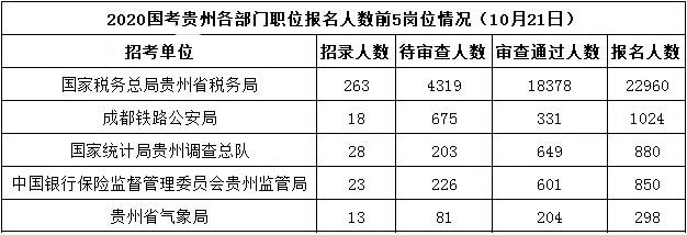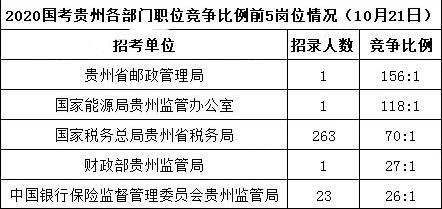 2020国考贵州地区各部门竞争激烈前5部门情况(10月21日9时)
