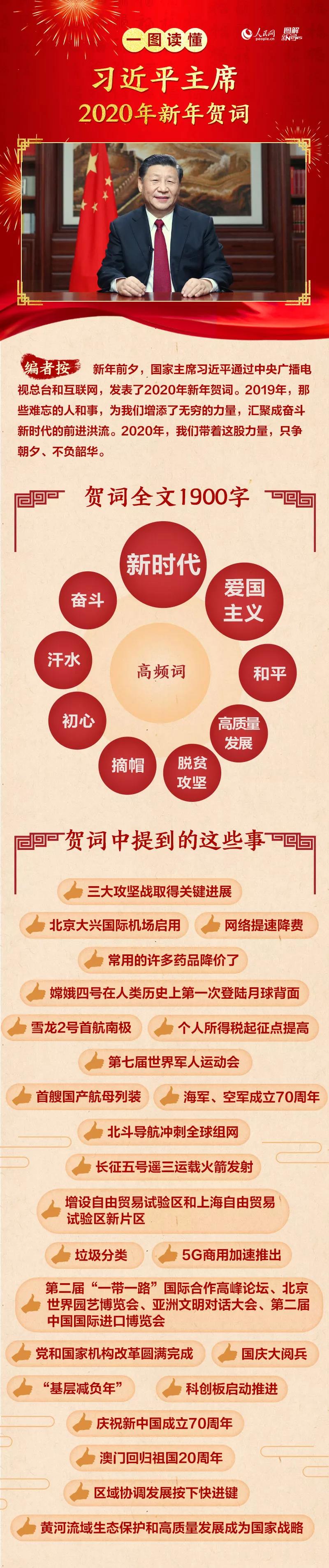 新年前夕,国家主席习近平通过中央广播电视总台和互联网,发表二〇二〇年新年贺词,全文如下: