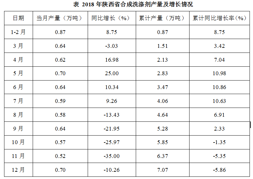 ①文字部分:全国合成洗涤剂产量情况,并从各省市的产量来分类,告诉了我们排前十名地区分别是谁,然后具体广东省、四川、安徽、陕西等重点省份的情况。
