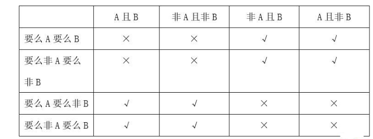 ②要么非A要么非B;