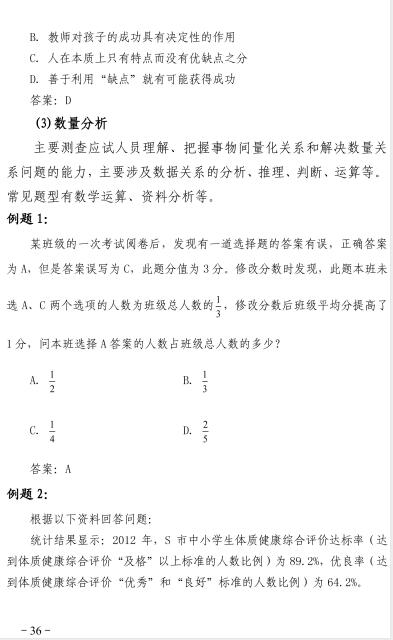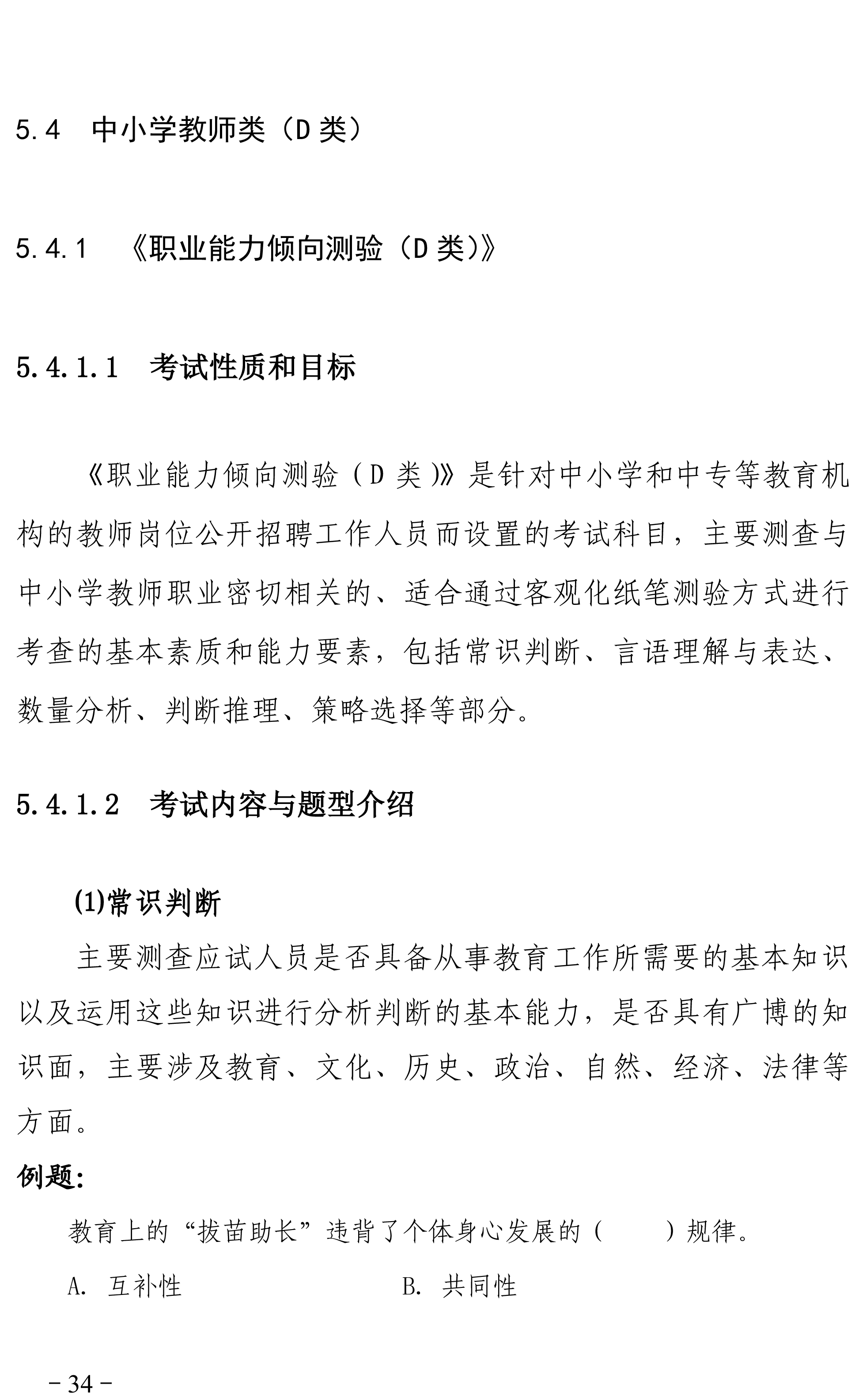2020年贵州事业单位中小学教师《职业能力倾向测验(D类)》考试大纲