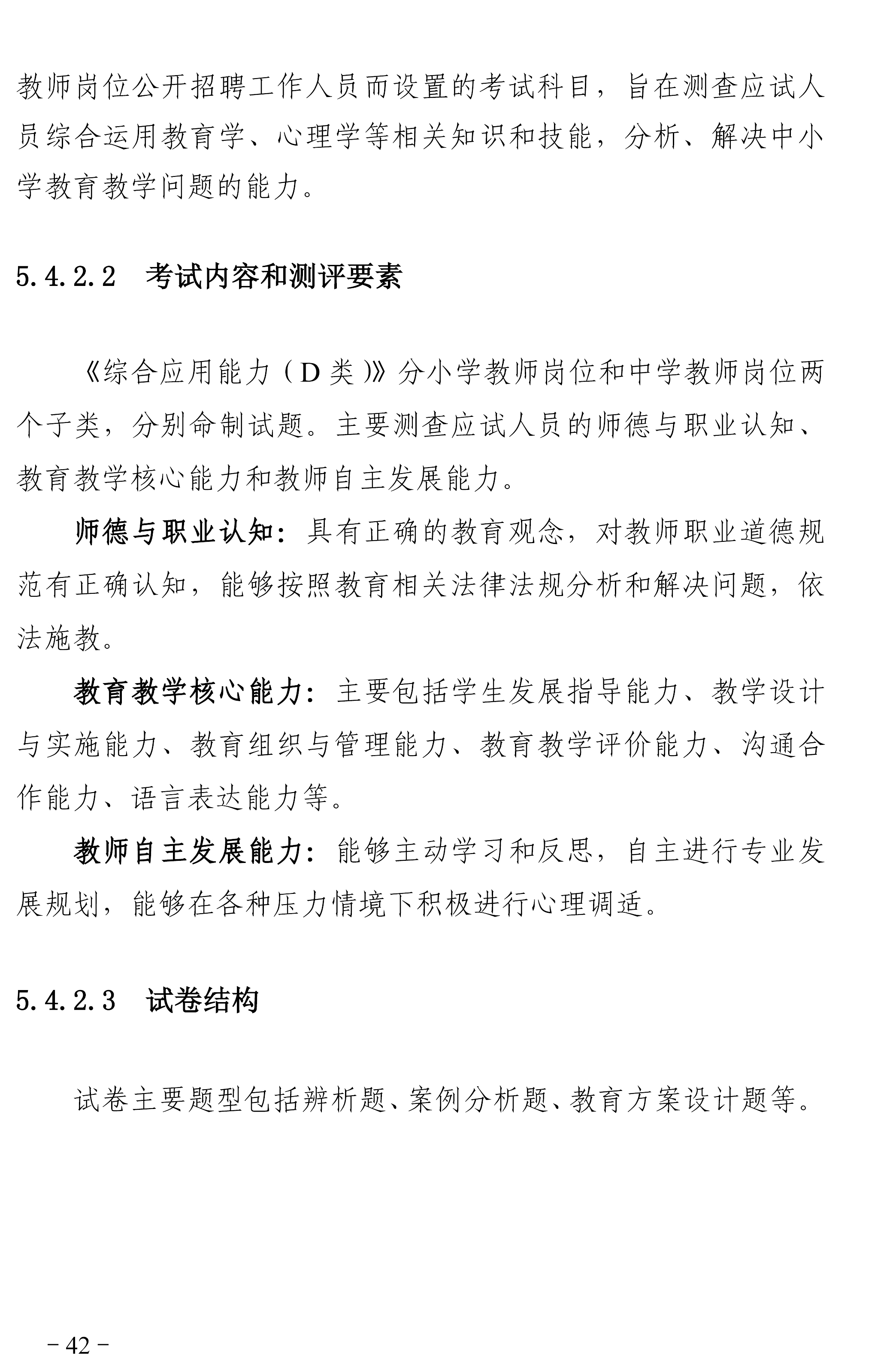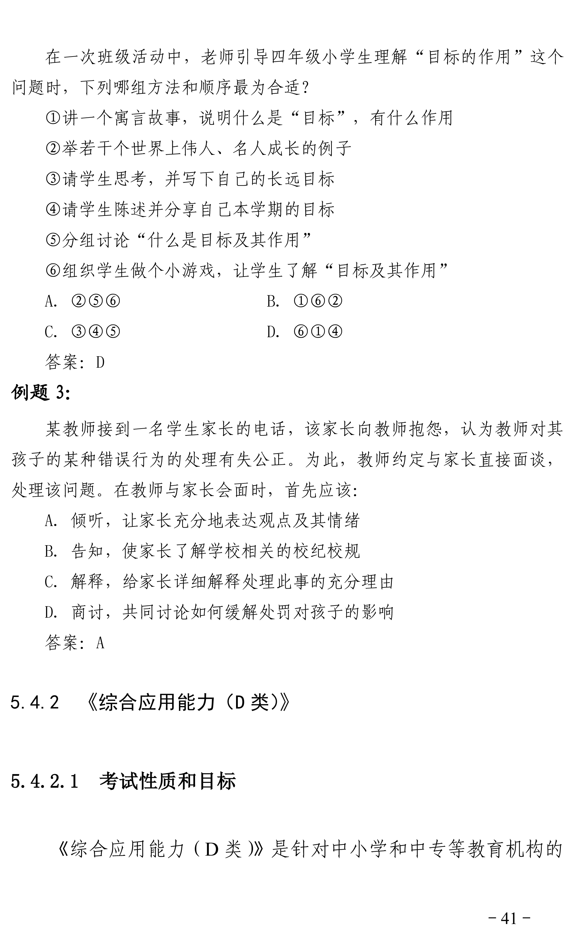 贵州教师招聘考试信息网:2020年贵州事业单位中小学教师招聘D类笔试考试大纲已发布,笔试科目考《职业能力倾向测验(D 类)》和《综合应用能力(D 类)》,《职业能力倾向测验(D 类)》是针对中小学和中专等教育机构的教师岗位公开招聘工作人员而设置的考试科目,主要测查与 中小学教师职业密切相关的、适合通过客观化纸笔测验方式进行 考查的基本素质和能力要素,包括常识判断、言语理解与表达、 数量分析、判断推理、策略选择等部分。