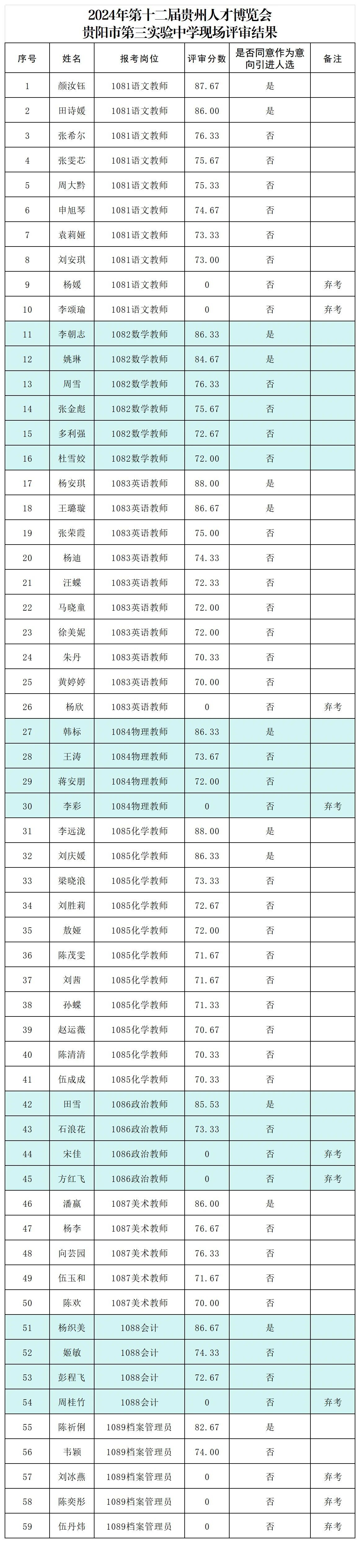 2024年第十二届贵州人才博览会贵阳市第三实验中学现场评审结果公告