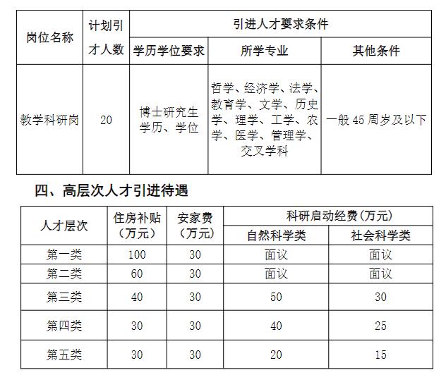 1.前四类人才引进岗位需求不限