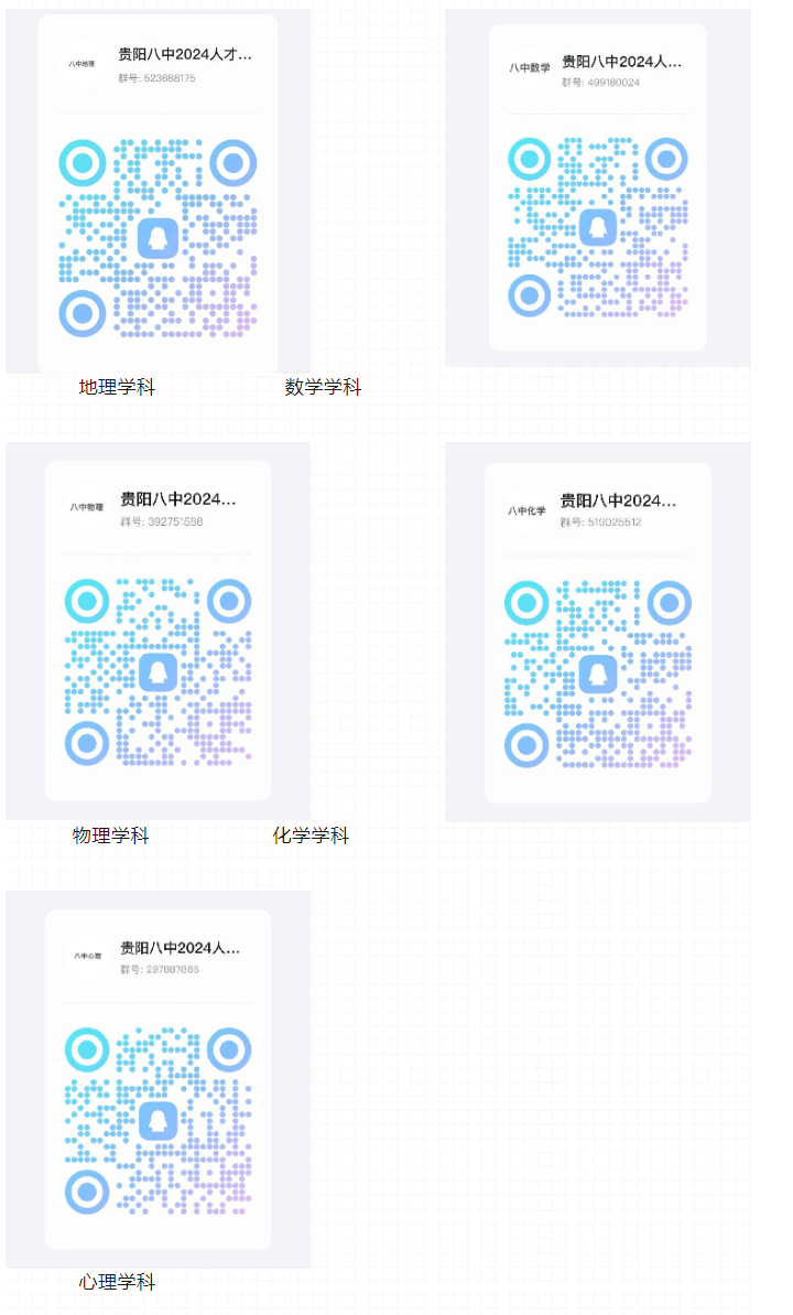 按照相关文件要求,报名人数大于35人的岗位,组织初评;报名人数低于35人(含35人)的岗位,直接进入现场评审环节。具体安排如下:初评形式:以线下面试为主,不能参加线下面试的人员通过腾讯会议参加线上面试。初评时间:2024年5月11日(周六)上午8:00。待线下面试结束后,进行线上面试(具体时间据实际情况而定)。初评地点:贵阳市云岩区瑞金中路51号贵阳市第八中学(线下);腾讯会议(线上)。初评内容:由主考官从题库中随机抽题提问,问题涉及教育教学相关内容。面试时间平均每人5~8分钟。初评要求:参加线下面试的人员准备所需证件原件:本科、硕士学历学位证(未取得硕士学历学位证的应届毕业生,需提供就业推荐表)、身份证、教师资格证、普通话证、副高级及以上资格证书,省内各级机关事业在编人员需提供具有单位人事管理权限部门同意报名的证明。参加线上面试的人员自备所需证件电子档、黑板、粉笔、安装腾讯会议软件的电脑设备。未按规定时间参加初评者,视为自动放弃。现场评审时间:2024年5月14日(周二)上午7:40现场评审内容:15分钟教学+现场提问(现场备课,备课时间40分钟)准备资料:所需证件原件:本科、硕士学历学位证(未取得硕士学历学位证的应届毕业生,需提供就业推荐表)、身份证、教师资格证、普通话证书、副高级及以上资格证书,省内各级机关事业在编人员需提供具有单位人事管理权限部门同意报名的证明。请资格初审合格人员于5月10日中午11:00前扫码加入相应学科QQ群(二维码见下)。后续安排将在QQ群发布。