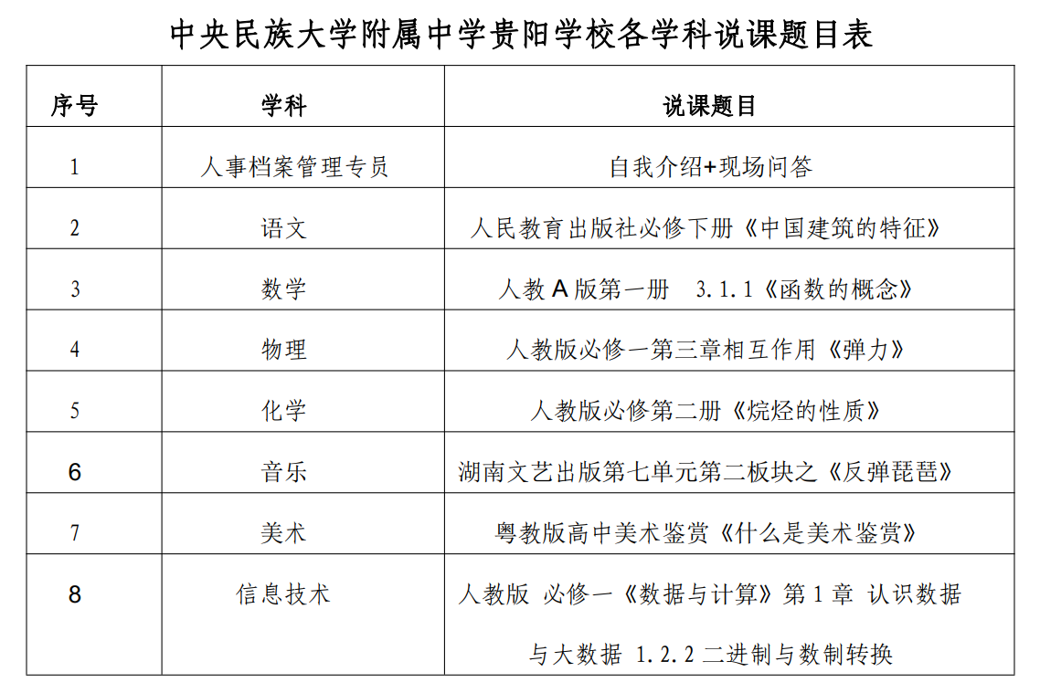 2.初评地点:中央民族大学附属中学贵阳学校(地址:贵阳市乌当区东风镇洛湾半岛)高中部二楼阶梯教室