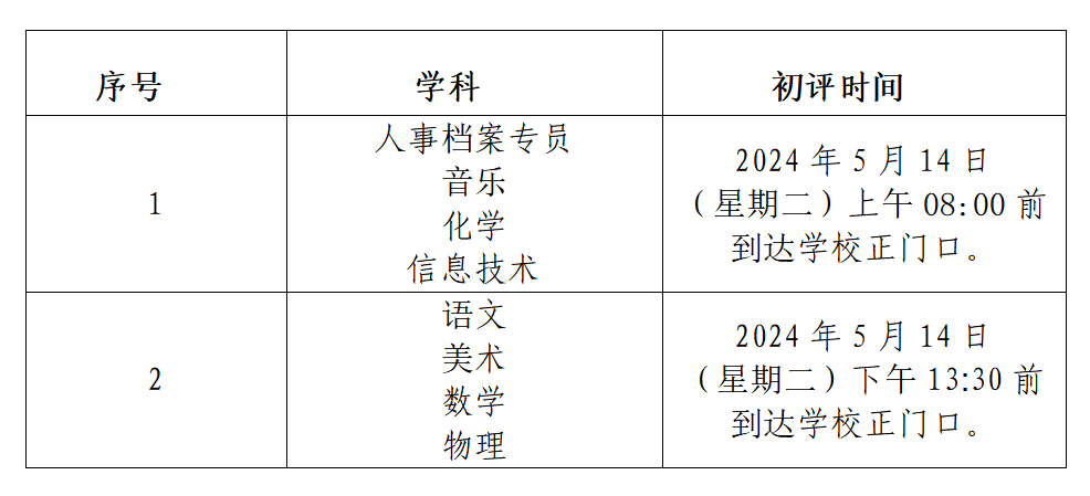 1.初评时间:2024年5月14日(星期二),具体时间如下: