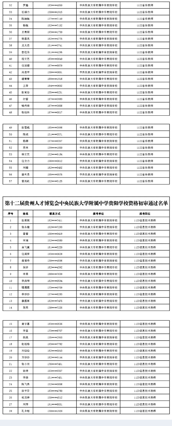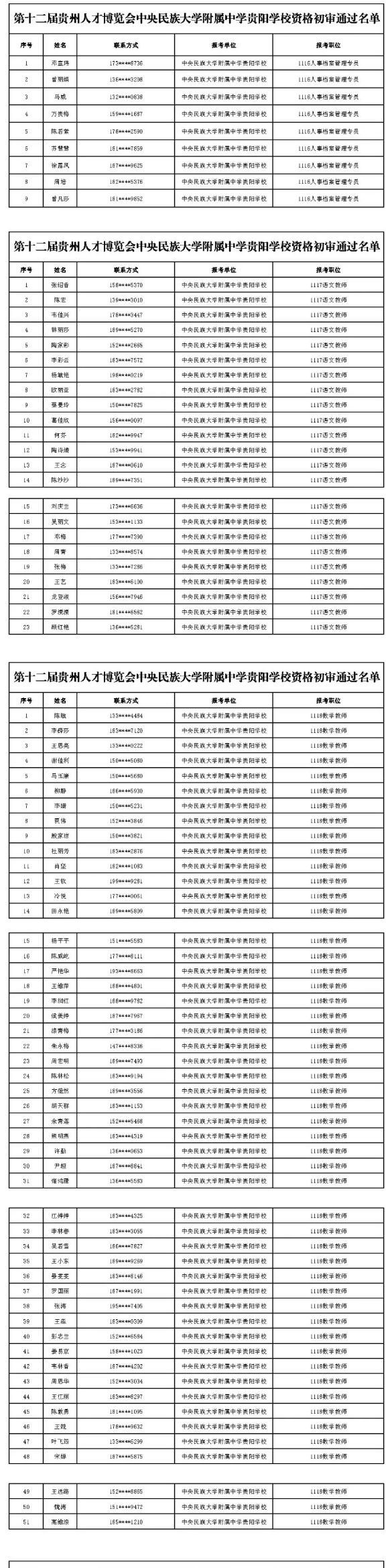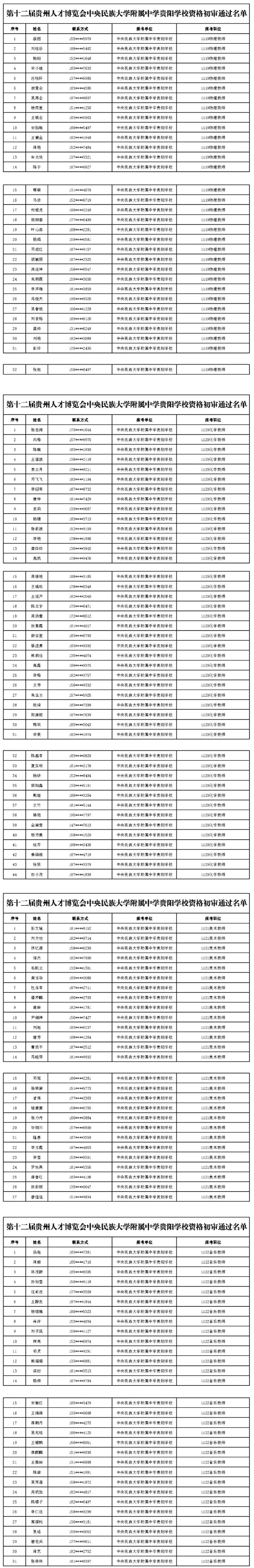 资格初审合格人员名单详见附件《第十二届贵州人才博览会中央民族大学附属中学贵阳学校资格初审通过名单》。