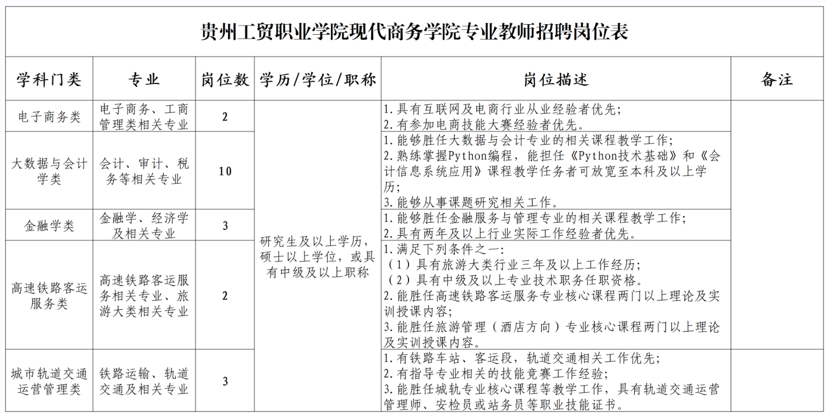 2.简历初筛通过人员将会电话通知面试,面试通过人员名单将在贵州工贸职业学院微信公众号(贵州工贸职业学院)及官方网站上进行公示,请应聘人员自行查看。未进入面试、面试未通过,不再另行通知。